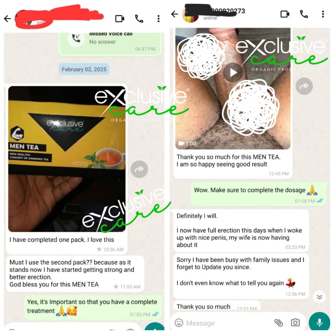 The next day, I decided to give it a try. I ordered the Men’s Tea from Exclusive Care. When it arrived, I had doubts. But I was also desperate, so I followed the instructions and started taking it daily.